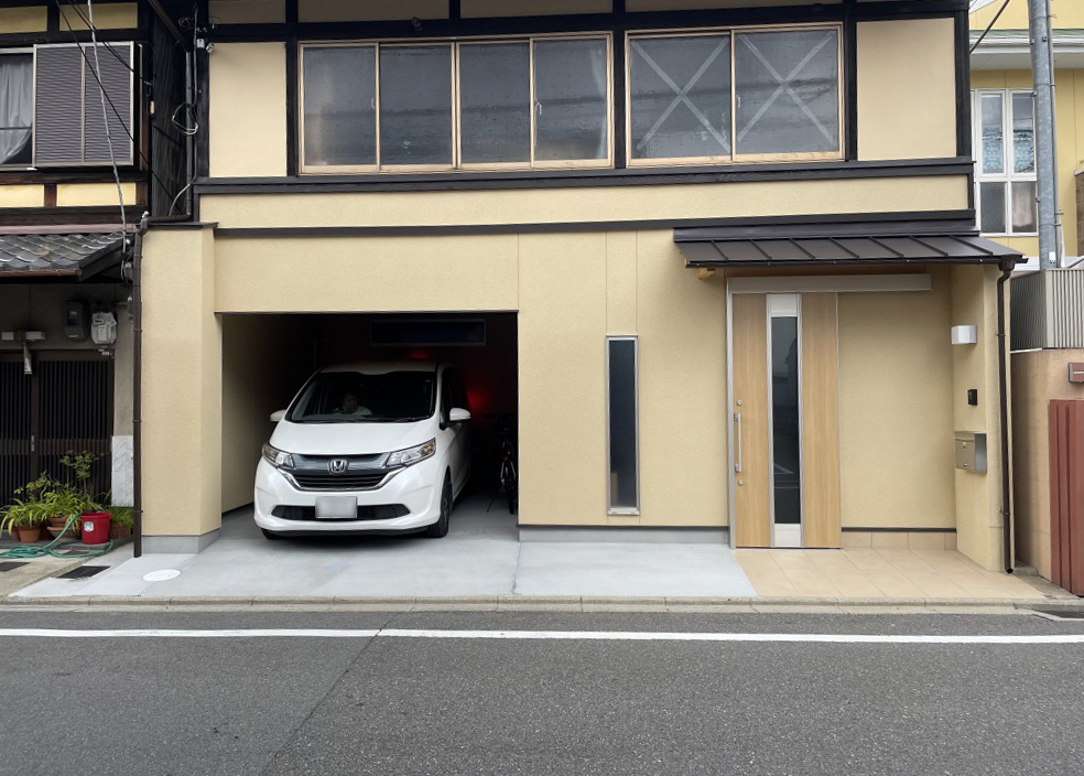 • ガレージの天井部分は木目調を採用。ここにもこだわりが光ります。