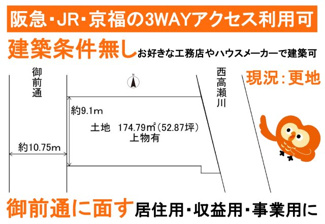 御前通に面した立地で、居住用・収益用・事業用にも適しています。